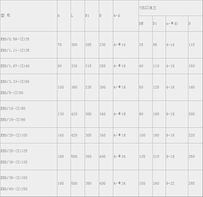 XBD-(I)型管道式消防泵是本司在原有立式多級(jí)管道泵基礎(chǔ)上根據(jù)消防泵的最新標(biāo)準(zhǔn)要求而開(kāi)發(fā)出的新一代XBD管道型中低壓消防泵組產(chǎn)品。供輸送不含固體顆粒的清水及物理化學(xué)性質(zhì)類似于水的液體之用。適用于各種場(chǎng)合如住宅、賓館、辦公大樓、商業(yè)大樓、工廠、醫(yī)院等處的消防供水。